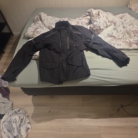 Pent og lite brukt jakke. 2 i en jakke. Tynn jakke inni, om du tar av mc jakka. Str 3xl ( mer xl størrelse) selges 1000kr