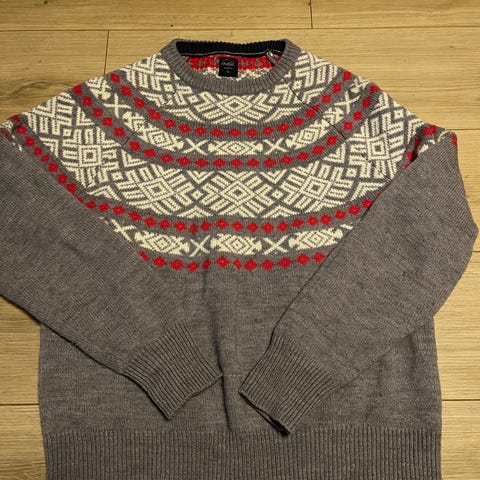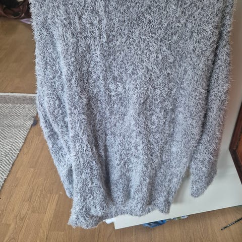 Oversized genser i myk ull. Har desverre et lite hull på ryggen. Acryl, angora ull og nylon