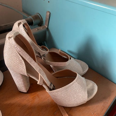Zara Hæler i størrelse 38. Gull glitter. Medium hæl