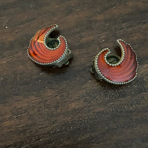 Vintage rav øreclips m/sølv