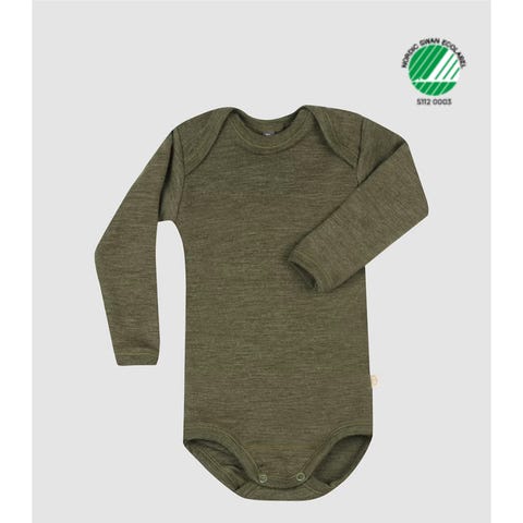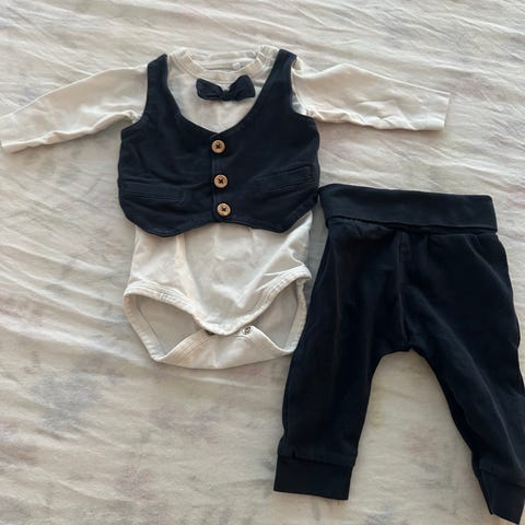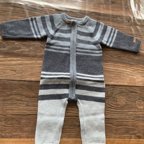 Dressen er kun prøvd på, barnet vårt slet med eksem, og har derfor ikke kunnet bruke ulltøy. Armene og bena har brettekant, jeg vil derfor si at den passer fra størrelse 50-62. Den er en stor størrelse 56 i utgangspunktet 😊