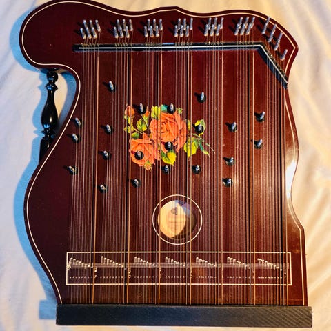 Rosen autoharpe med 6 cords og 25 strenger med stemmenøkkel . Rosen auto