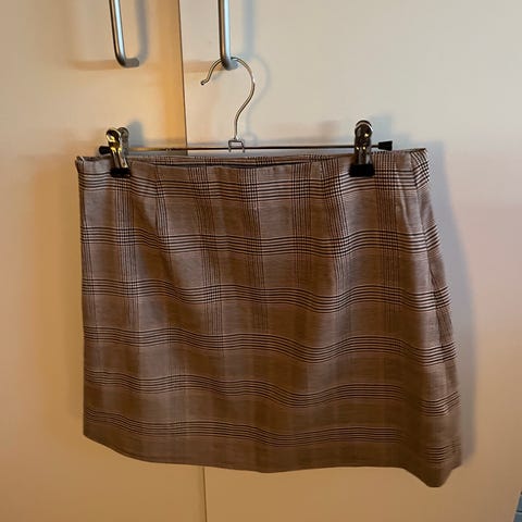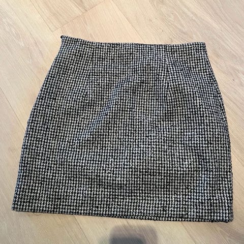 Rutete skjørt i størrelse M for kvinner. Kjolen har et rutete mønster og en løs, flytende passform. Skjørtet mitt er litt lysere enn det som er angitt på bildene som er lånt. Det første bildet er originalt. Flere bilder kan sendes ved behov. Helt nytt, lappen er fortsatt på. Hentes på Stovner eller sendes mot frakt.
