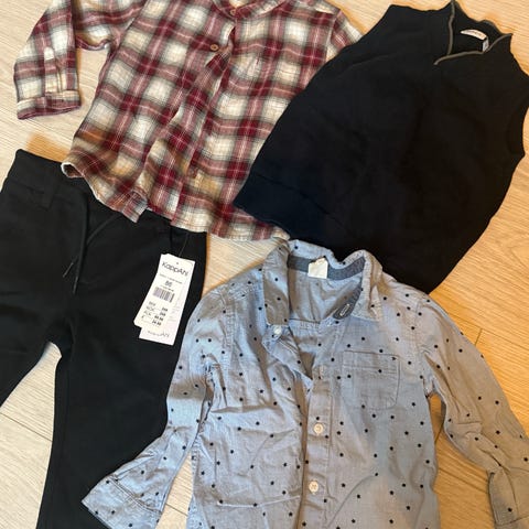 Liten pysjpakke til gutt, str. 86. Pakken inneholder én langermet pysj fra Newbie, samt to langermede og én kortermet pysj fra Lindex. Lindex-pysjene er store i størrelsen.