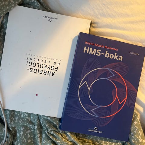 Nye og pene pensumbøker uten markeringer. Bøkene er egnet for studier innen psykologi, HR, personalledelse og helse, miljø og sikkerhet i offentlig sektor.