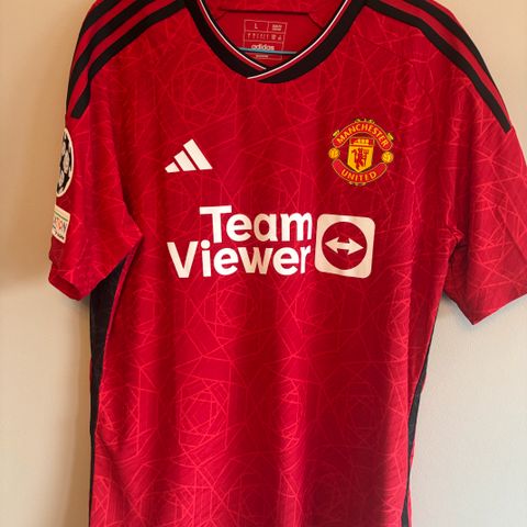 Selger en langermet Manchester United hjemmedrakt med Patrice Evra #3 bak på ryggen.