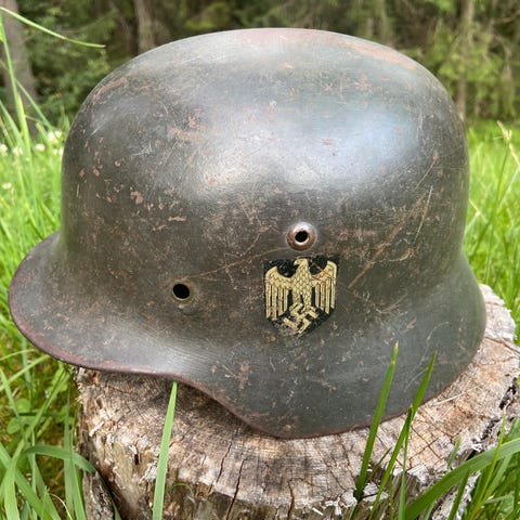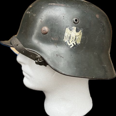 Hel og grei norsk flyvåpen hjelm , orginal innmat noe tørr . Ikke ofte å se disse hjelmene med denne merkinga for salg . Kan også bytte i bajonetter / støveldolker / andre hjelmer
