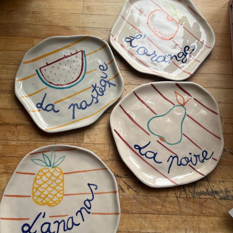 Har også noen dype tallerkener i samme stil som den blå og hvite skålen
