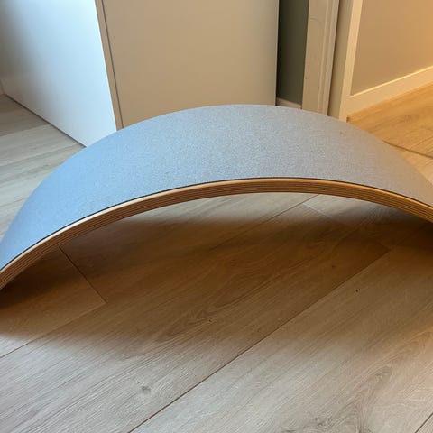 Balansebrett fra Wobble Original, i bøk og grå filt. Tekst om varen hentet fra hjemmesiden til Små Spor, der finnes også flere bilder, bla av ulik bruksområder.