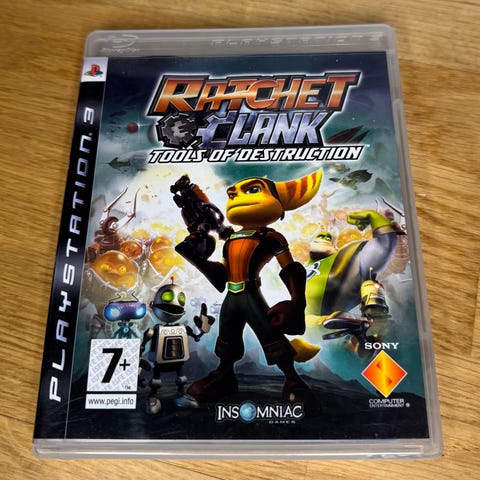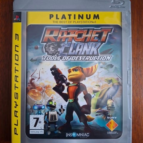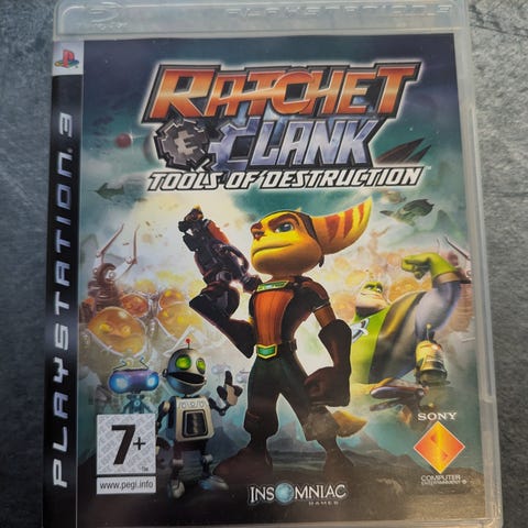 Ratchet & Clank Tools of Destruction Playstation 3-spill. Action- og eventyrspill utviklet for Playstation 3, med aldersgrense 7 år og oppover.