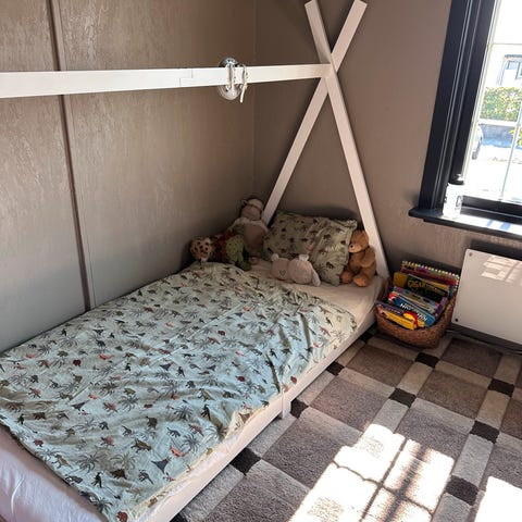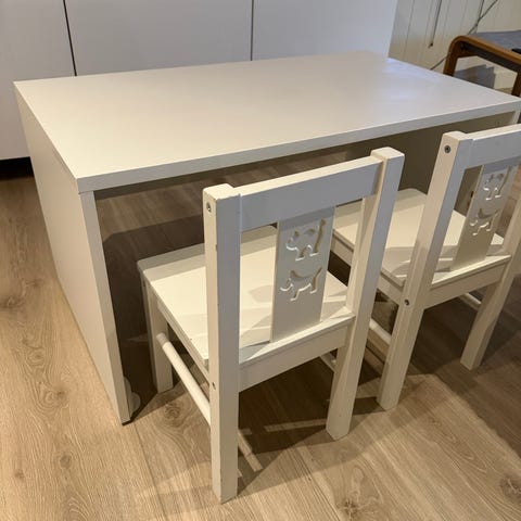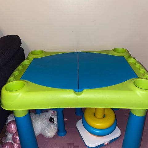 IKEA selger også tilhørende kasse som kan brukes til oppbevaring av f.eks leker (se siste bilde, hentet fra IKEA) men vi har brukt dette som et leke/tegnebord, uten kasse.