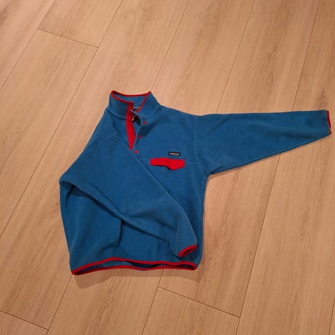 Patagonia fleece for herre i størrelse L (m), grå farge, laget av fleece-materiale. Denne ble for liten for meg, så vil si den er mer lik en medium kanskje i størrelse. Liten i størrelsen til å være en L i alle fall.