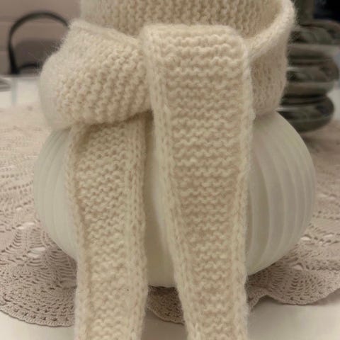 Sophie skjerf strikket i alpakka merinoull i størrelse 100 cm lang, går to ganger rundt halsen.