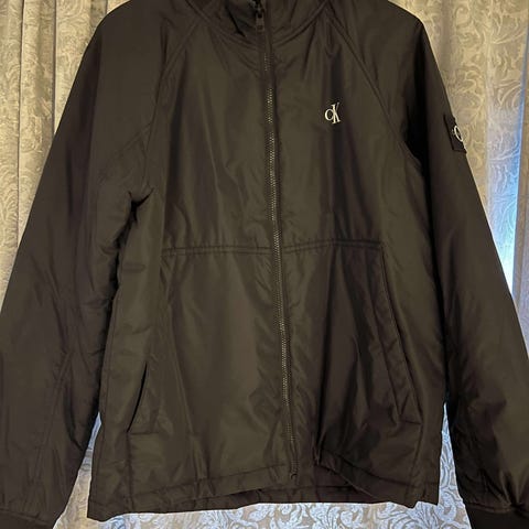 Dette er en eldre frakk i fargen mørk blå. Det er fór i frakken som du kan ta av på sommeren 👍