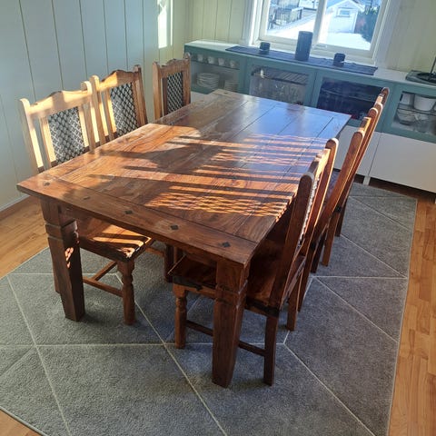 Stort solid spisebord selges for 3000.
