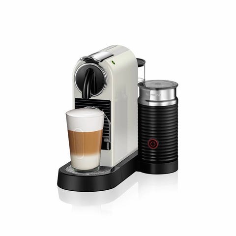 Nespresso Citiz & milk kaffemaskin med melkeskummer i hvit farge. Maskinen har et kompakt design med avtakbar vanntank og integrert melkeskummer for tilberedning av kaffe med melk. Passer til Nespresso-kapsler og egnet for hjemmebruk.