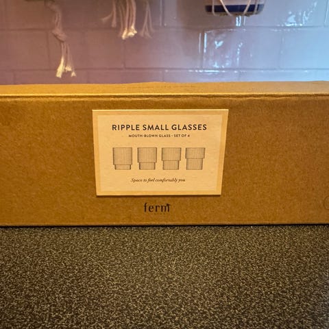 Selger 16 ripple glass fra Ferm Living. Disse ble kjøpt nye i slutten av oktober, og flere er enda ikke brukt.