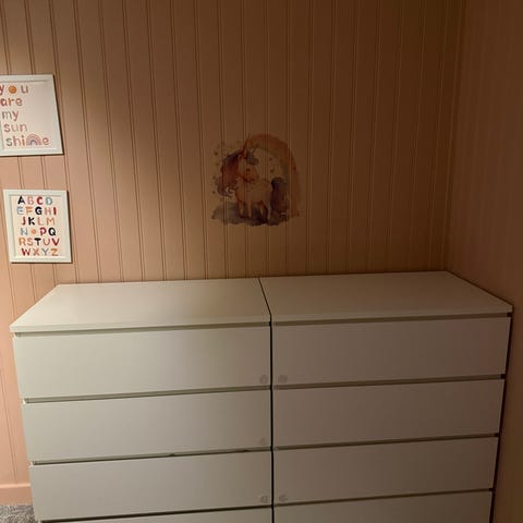 Vi monterte den opp feil - planken over de to øverste skuffene er stilt feil vei, det er derfor en glipe som man kan se på bildene. Kan nok demonteres og snues på. Vi har ikke hatt problemer med at den er feilmontert.