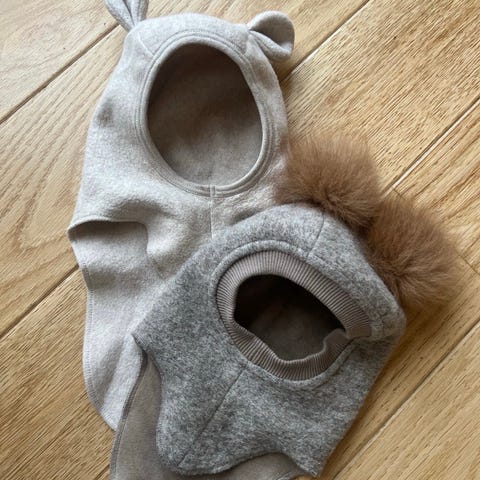 Kjempe godt ullsett som har blitt brukt i vinterhalvåret når barna har sovet i vogn. Utrolig gos ull fra cubus. Luen har også søte ører på hodet 🤗