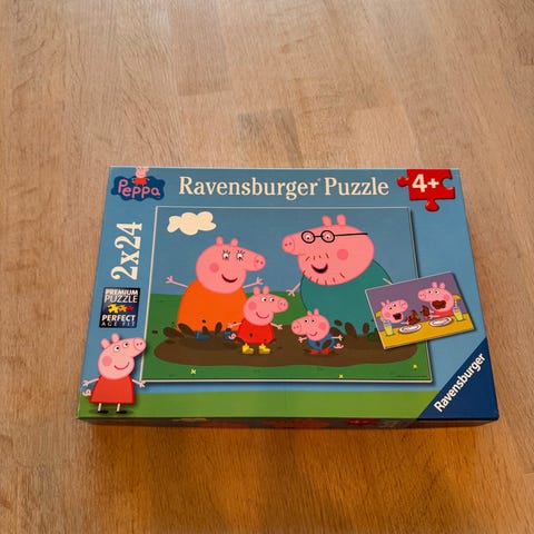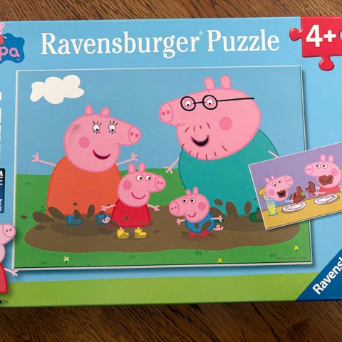 Ravensburger Peppa Pig puslespill 4-pakning med fire forskjellige motiver som har litt forskjellig vanskelighetsgrad med ulikt antall biter i hvert. Godt brukt og likt her, men masse bruk igjen! Alle biter inntakt.