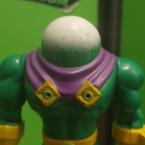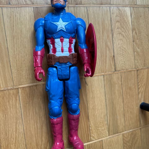 Sett med superheltfigurer fra Marvel og DC, inkludert karakterer som Venom, Batman, Superman, Thanos og Captain America.