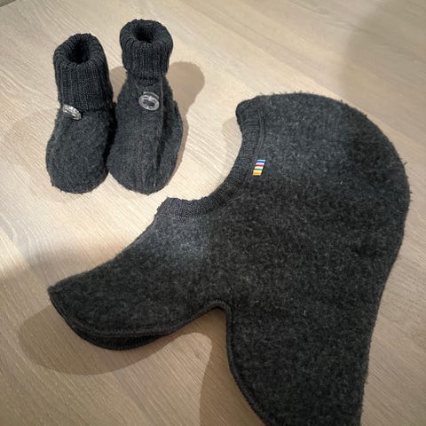 Pent brukt balaclava fra Joha i ullfleece. Grå/brun farge.