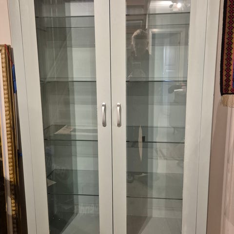 Pent vitrineskap med glasshyller og belysning