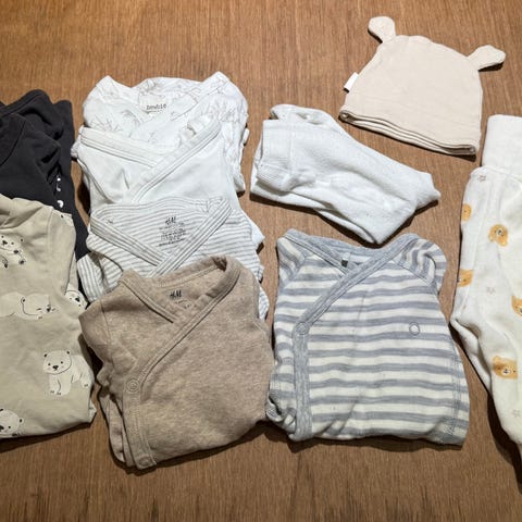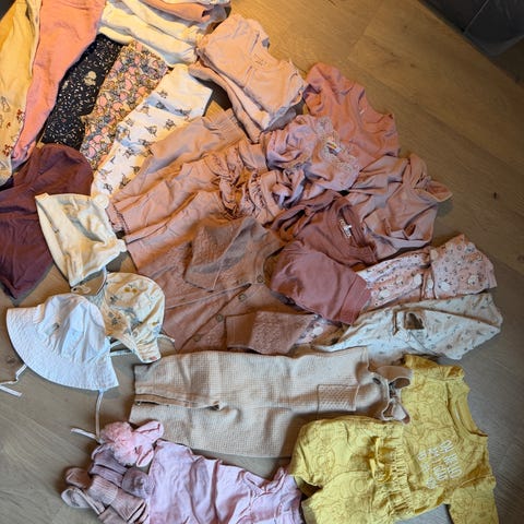 Skriv hva du trenger, så kan jeg designe en klespakke tilpasset ditt behov. Skriv kjønn, ønsket plagg og størrelse, og antall plagg. Tar du kontakt, så får du tilsendt bilde av plaggene.