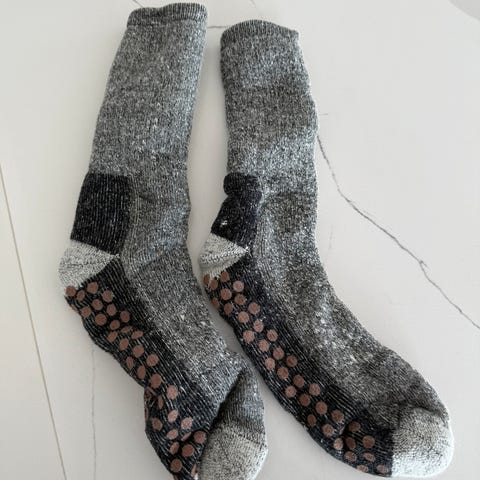 Ullsokker / raggsokker str 41 - 42 Håndstrikket i dobbel Fabel , lys grå/hvit
