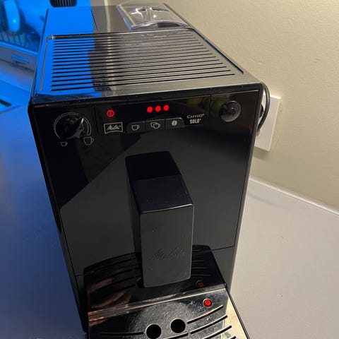 DeLonghi Nespresso Lattissima kaffemaskin i sort farge. Denne modellen er designet for å bruke kapsler og har en integrert melkeskummer for enkel tilberedning av melkebaserte drikker. Maskinen har et kompakt design, noe som gjør den ideell for mindre kjøkken. Enkel betjening med knappesystem for ulike kaffetyper.