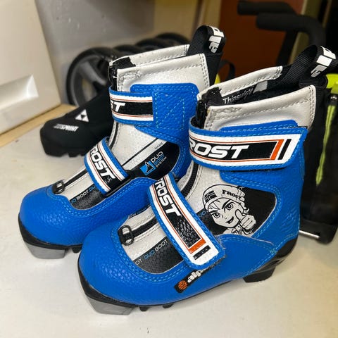 Av merket Frost, med godt ullfôr inni. Enkel å få på og av foten med strikk og borrelås, samt god hempe bak til å dra skoen på plass.
