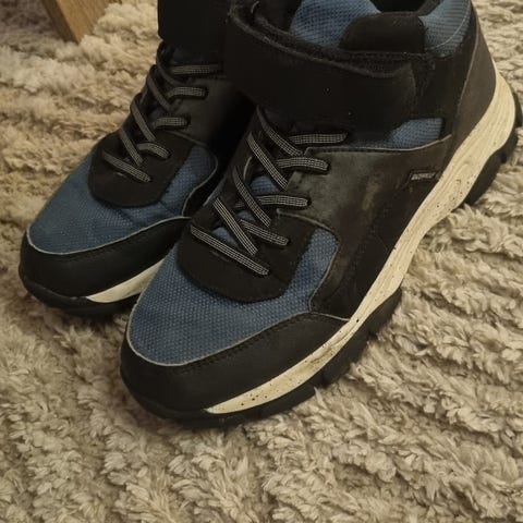Okaki barnesko for gutt i størrelse 38. Skoene har brun farge og er laget av slitesterkt materiale egnet for barn.