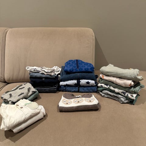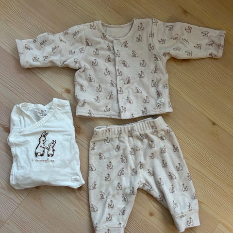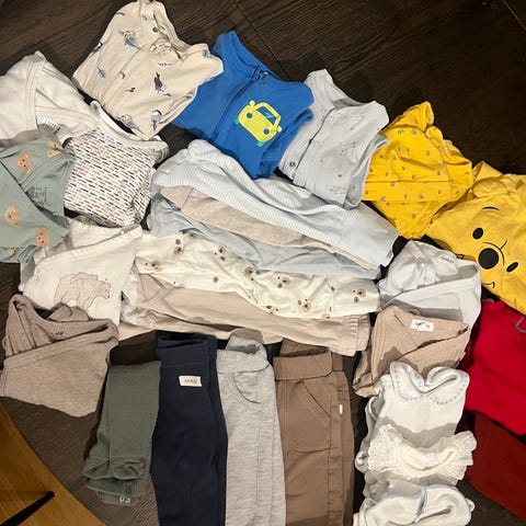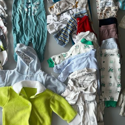 barneklær pakke i størrelse 56, flerfarget og unisex. Jeg har brukt det til gutt🩵