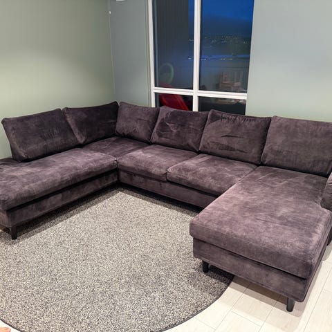 Sofaen fremstår som pent brukt og godt vedlikeholdt. Putetrekkene kan enkelt styles med pledd eller puter etter egen smak.