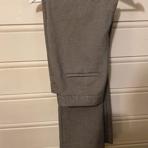 Dette er en kjempefin bukse fra kvalitetsmerket Gestuz. Den er lite brukt og helt svart i fargen. På noen av bildene ser den nesten litt falmet ut, men det skyldes lyset fra kameraet. Jeg har tatt mange bilder og kommentert detaljer under bildene. Buksen er laget av et behagelig stoff som består av 65 % Bomull, 31 % Polyester og 4 % Elastane. Buksen er str 42 eller L. Denne passer fint til høytidelige anledninger, kontoret eller om du har lyst til å være fin i hverdagen. Buksen styles lett opp eller ned. Prisen er inkludert frakt.