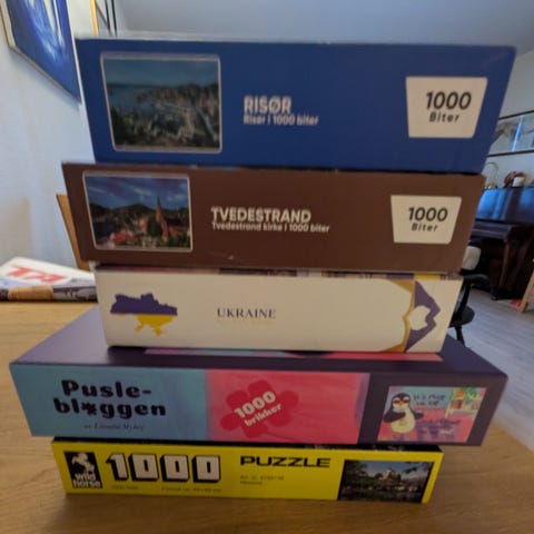 Pent brukte puslespill med flotte motiver av merkene Schmidt og Ravensburger. Kan sendes mot frakt