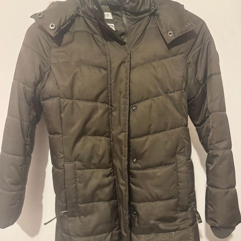 H&M jakke for barn i størrelse 146. Deilig myk teddy-hette. Se bilde med beskrivelse av jakken.