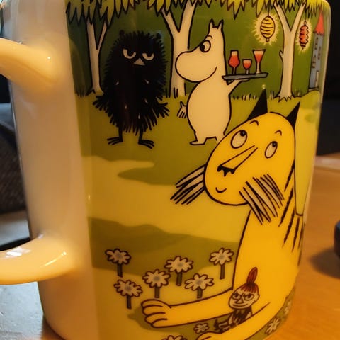 Moomin Arabia Mummikopp 30 cl 'Lille My i engen'.