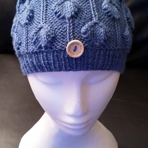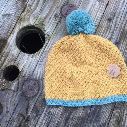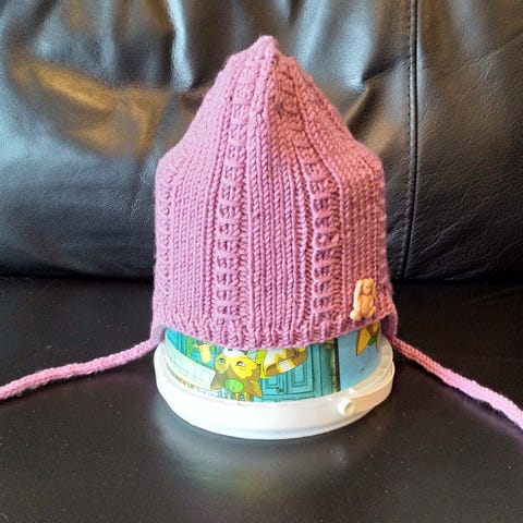 Hjemmestrikket marius sett i rosa.