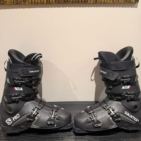 Salomon SPro alpin støvel med 100 flex, dvs god støtte til ankel og ben i støvel som innbyr til aktiv kjøring og lek i bakken. Str 25-25.5 noe som tilsvarer 39/40 i vanlig sko.