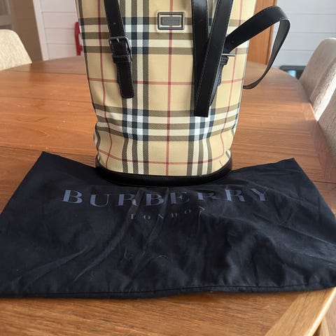 Burberry dameveske laget i lær. Vesken har Burberrys karakteristiske rutemønster og detaljer i svart lær. Egnet for daglig bruk og tilbehør for dame. Selges samlet