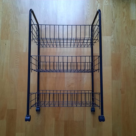 Trillevogn/ hylle med hjul. Passer fint på kjøkken eller bad med liten plass.