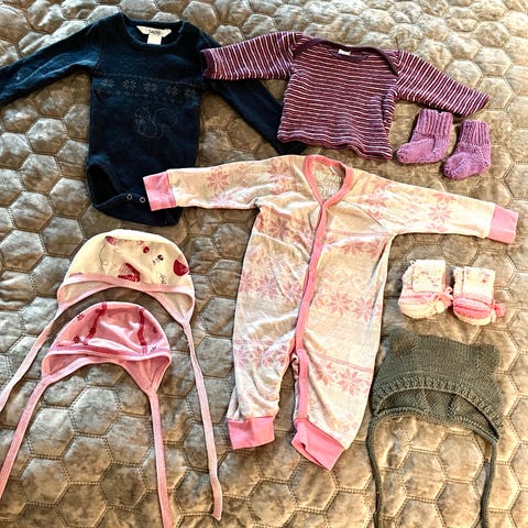 - Hjemmestrikket rosa ull lue (ca str 68)