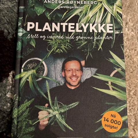 Anders Røyneberg Plantelykke bok med fokus på stell og inspirasjon til å fremme planter. Inneholder informasjon om plantepleie og tips for innendørs planter.