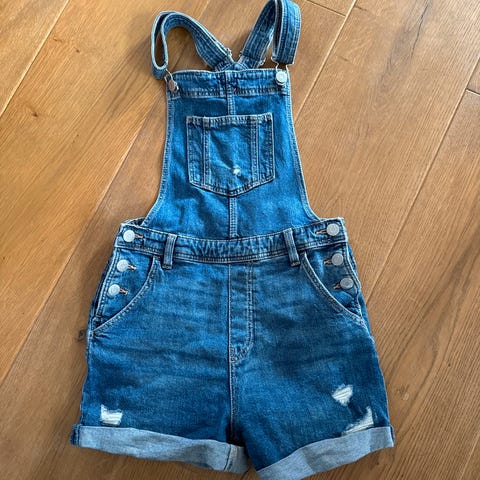H&M denimbukse i blå farge, størrelse 152 for jente. Laget av denimmateriale med justerbar midje og høy midje. Selges for 150 kr, som ny.