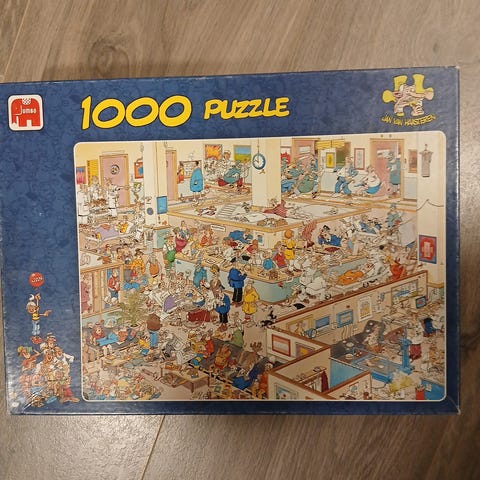 Jan van Haasteren puslespill "Motorbike Race" 1000-2 brikker selges. Det mangler 2 brikker og selges derfor billig.
