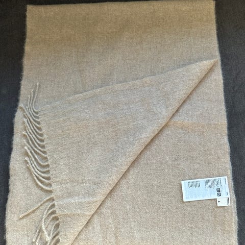 Deilig ullskjerf kun brukt noen få ganger, fremstår som unbrukt. Måler 185 (uten frynser) x 69 cm i størrelse.