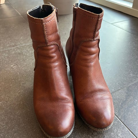 Kule skoletter i skinn, knapt brukt da de ble litt trange.