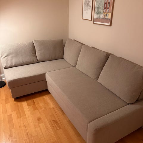 Nicely used ikea Friheten sofa bed. Bought new in 2023 with two extra pillows. The cushions are slightly shaped to the back of the sofa, but can be used nicely.