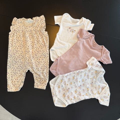 3 stk bodyer og en bukse fra Hust and Claire. En body fra Libero. Pent brukt. Str 68